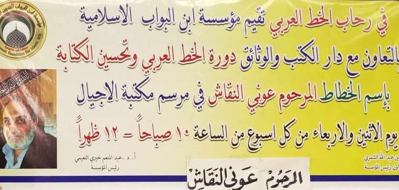اختتمت دورة تحسين الخط العربي في دار الكتب والوثائق والتي اقيميت بالتعاون مع مؤسسة ابن البواب للفنون الاسلامية يوم الاربعاء الموافق 23نيسان 2025 على قاعة فايق حسن مقر الدار.وتناولت محاورها مقدمة عن الخط العربي، والتعرف على قواعد خط النسخ، والرقعة وإتقان الكتابة بخط حسن، وتعرف المشاركون فيها على بعض أنواع الخط العربي مثل الخط الكوفي وخط النسخ وخط الرقعة وخط التعليق وخط الثلث والديواني.