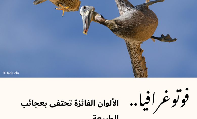 المصور الأمريكي “جاك تشي” جاء ثانياً بعملٍ بعنوان “الفأس الطائر” نرى فيه مواجهة مُشوّقة بين صقر الشاهين وبجعةٍ ضخمة، حيث تدافع صقور الشاهين عن أعشاشها من اقترابِ طيور البجع الضخمة، فتهبط بأقصى سرعتِها وتغوصُ في الهواءِ لتُهاجم الدُّخلاء بحركاتٍ دقيقةٍ وسرعةٍ مُبهرة. غالباً ما يَنجو البجعُ من هجماتها، لكن السرعة القاطعة أحياناً تكون كافيةً لإسقاطه صريعاً.
