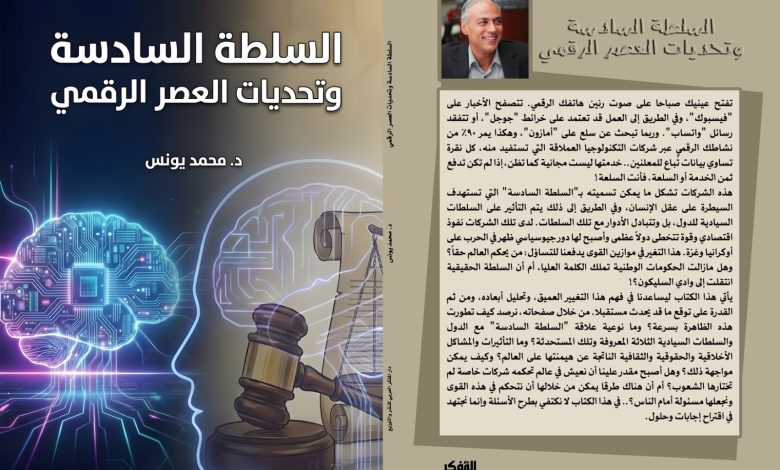 صدر كتاب جديد للكاتب الصحفي د. محمد يونس مدير تحرير الأهرام بعنوان “السلطة السادسة وتحديات العصر الرقمي” عن دار المفكر العربي.