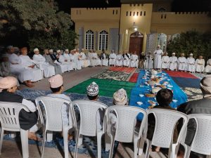 بعد قضاء الصلاتين كان الأخ سعادة حمد الضوياني يستعجل وصلونا لنبدأ الحفل بليلة الإسراء والمعراج الذى دعا له سعيد الذكر الأخ حمدان الضوياني، قلت نحن بالباب، فلما سلمنا بإشروا بالاحتفاء وكان بمثابة إيماني بالقلب والجنان وليس بطول الكلام، قدم المقدم للقاء بكلمة موجزة ثم دعا المنشدين لإنشاد صوفيّ فلما اكتفى المنشدون بدقائق معددوة كادت الأيد أن تمتد إلى للقهوة والطعام الممدودين أمامنا من المغرب، لكن الشيخ والمتحدث المبلغ قام من مخبئه في الصف فقال لا تترك هذه الفرصة في هذه الذكرى العطرة بالإسراء والمكان والزمان الآن ملتهبان، فقدم مداخلة بليغة ومؤثرة، فقلت له أين كنتم حين تخطب خطبة الجمعة التى قُرِأتْ. بالأمس في المسجد والتى كانت باردة برود الشتاء وكان يلزم أن يكون الدعاء الذى دعا به المتحدث الأول؛ لأن الواجب بحده وليس بأعلاه يستوجب ذلك القدر من الدعاء.