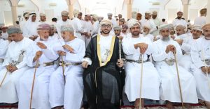 وقد كان وصولنا إلى (سبلة العلاية) قبل الموعد المحدد بالواحدة ظهرًا بنصف ساعة، فوجدنا السيارات قد غصت بها الساحات التى تخدم المجلس أو القريبة منه فأبعدنا سيارتنا وسيارة الأخ الشيخ هلال السيابي، وإذا بمدخل السبلة وفنائها الخارجي قد امتلأ بجمهور المهنئين، وهم يتقاطرون في صفوف جماعات وزرافات وكأننا ندخل إلى قاعة (الأوبرا) أو مسرح (البيك دلي).