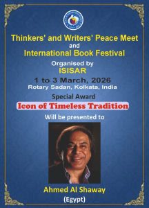 قررت مؤسسة ISISAR الهندية بكلكتا منح الشاعر أحمد الشَّهاوي(مصر) جائزتها الخاصة (أيقونة التقاليد الخالدة)، وسيتسلمها الشاعر في الأول من مارس بمناسبة انعقاد لقاء المفكِّرين والكُتَّاب، والمهرجان الدولي للكِتَاب .