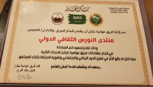 وجاء دور الفريق الرياضي فريق عوامية بايكرز بقيادة الكابتن خالد الفرج حيث تم تكريم الدكتور علي الدرورة والدكتورة أميرة العسيف والأستاذ زهير آل صويمل حيث استلم كل منهم شهادة شكر وامتنان ، وقد قدم راعي الحفل بعض كتب البخور هدية لفريق عوامية بايكرز.