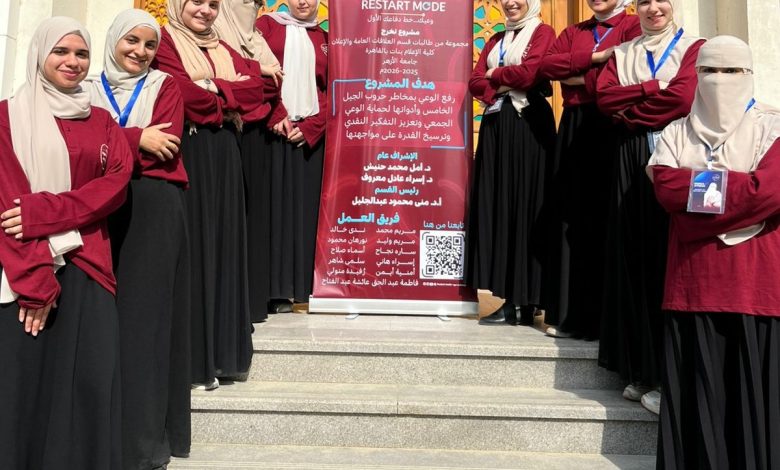 أطلقت مجموعة من طالبات قسم العلاقات العامة والإعلان بكلية الإعلام بنات جامعة الأزهر، مشروع تخرجهن تحت عنوان “ريستارت مود”، والذي يهدف إلى رفع الوعي بمخاطر حروب الجيل الخامس وأدواتها، بما يسهم في حماية الوعي الجمعي وتعزيز التفكير النقدي وترسيخ القدرة على مواجهتها.